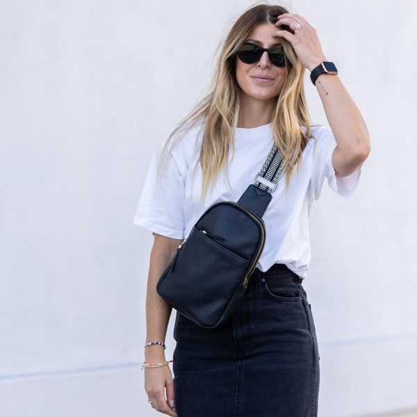 Your new go-to sling with plenty of interior space and a statement-making guitar strap.