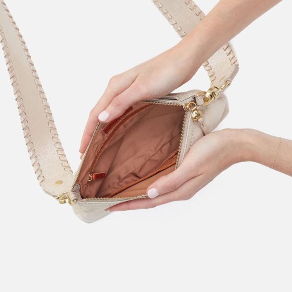 A convertible HOBO style that can be worn three ways: crossbody, baguette bag and wristlet.