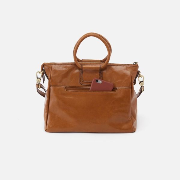 A medium satchel with a top handle and an adjustable removable strap.